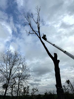 Villanyvezetékek és épületek közelében vagy épületek fölé benyúló fák ágait is ilyen módon biztonságosan el lehet távolítani emelőkosaras autó segítségével. Kisebb darabokra levágva, hogy biztonságosan meg lehessen tartani, így a tető nem károsodik!